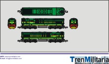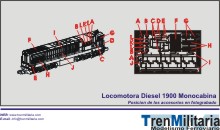 Reproducción de la locomotora diésel RENFE serie 1900 "Monocabina" o "Americana", para decorar en versiones de las épocas III y IV.