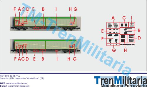 | Referencia TT-RE-000_0018 Vagón mercancías RENFE Cerrado JJPD (TT), en decoración Verde | 4,42 € |