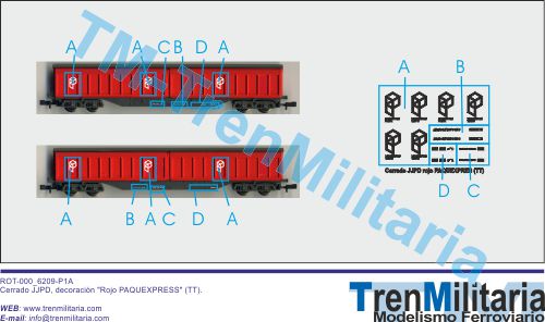 | Referencia TT-RE-000_0017 Vagón mercancías RENFE Cerrado JJPD (TT), en decoración Rojo PAQUEXPRESS | 4,42 € |