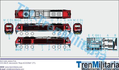 | Referencia TT-RE-000_0013 Locomotora diesel ACCIONA 333-382-0 (TT), en decoración Rojo | 5,33 € |