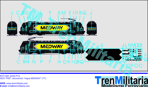 | Referencia TTCP000_0001 Locomotora electrica MEDWAY 5623 "PAZ" (TT), en decoración negra | 8,05 € |