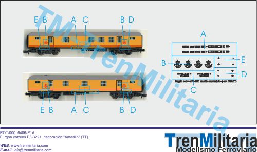 | Referencia TT-RE-000_0015 Vagón Furgón RENFE Furgón correos P3-3221 (TT), en decoración Amarillo anaranjado epoca IV-B | 4,42 € |
