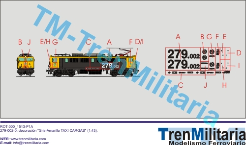 | Referencia O-RE-000_0001 Locomotora eléctrica RENFE 279-002-0 (1:43), en decoración Gris-Amarillo TAXI CARGAS | 5,78 € |