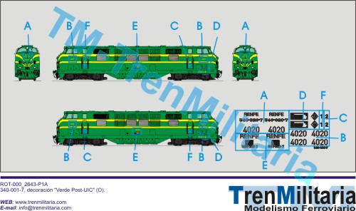 | Referencia O-RE-000_0002 Locomotora diesel RENFE 340-020-7 (O), en decoración Verde Post-UIC | 4,42 € |