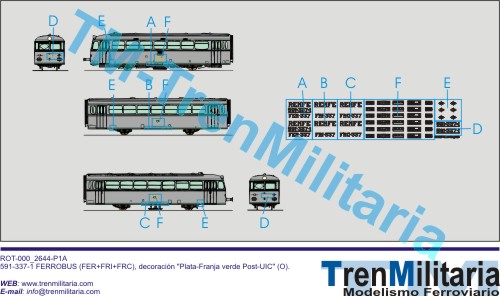| Referencia O-RE-000_0003 Automotor diesel RENFE Ferrobús 591-337-1 (FER+FRI+FRC) (O), en decoración Plata-Franja verde Post-UIC | 13,50 € |
