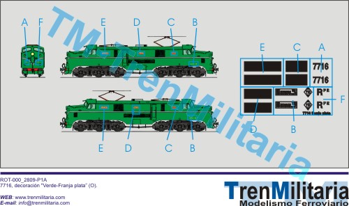 | Referencia O-RE-000_0010 Locomotora eléctrica RENFE 7716 (O), en decoración Verde-Franja plata pre UIC | 4,42 € |