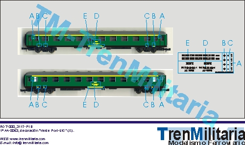 | Referencia O-RE-000_0012 Coche pasajeros RENFE 1ª AA-8063 (O), en decoración Verde Post-UIC | 5,33 € |