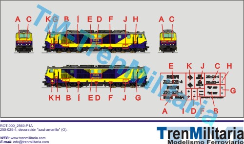 | Referencia O-RE-000_0014 Locomotora eléctrica RENFE 250-025-4 (O), en decoración azul-amarillo | 4,42 € |