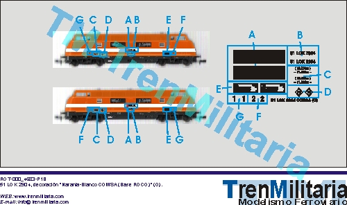 | Referencia O-RE-000_0024 Vagón mercancías COMSA 51 LOK 2904 (V200) (O), en decoración Naranja-Blanco | 4,42 € |