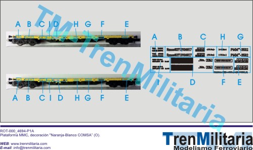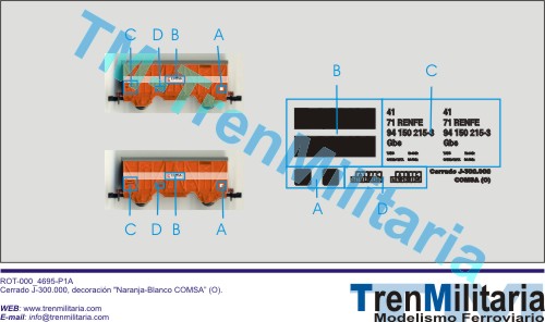 | Referencia O-RE-000_0020 Vagón mercancías COMSA Plataforma MMC (O), en decoración Naranja-Blanco | 5,78 € |