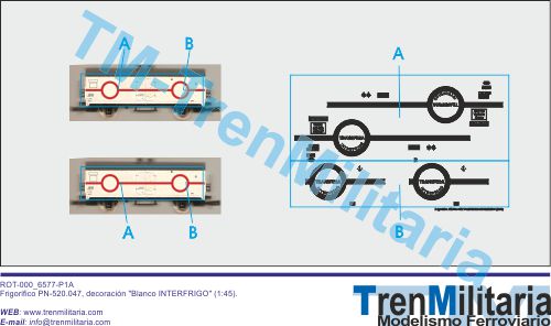 | Referencia O-RE-000_0024 Vagón mercancías INTERFRIGO Frigorifico PN-520.047 (1:45), en decoración Blanco | 5,78 € |