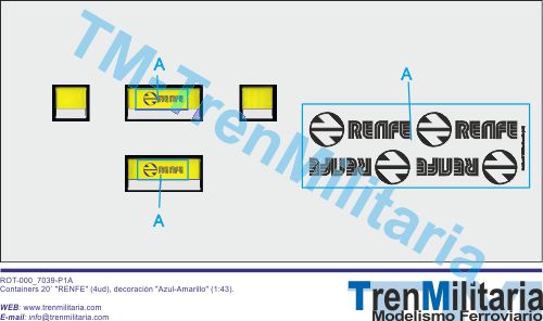 | Referencia O-LO-000_0001 Vagón mercancías RENFE Container 20 pies (4ud) (1:43), en decoración Azul-Amarillo | 15,32 € |
