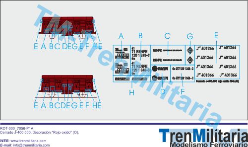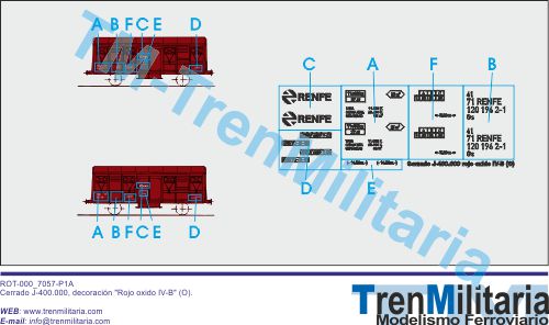 | Referencia O-RE-000_0030 Vagón mercancías RENFE Cerrado J-400.000 (O), en decoración Rojo oxido IV-A | 4,42 € |