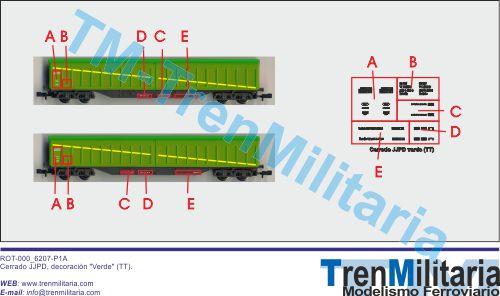 | Referencia TT-RE-000_0018 Vagón mercancías RENFE Cerrado JJPD (TT), en decoración Verde | 4,42 € |