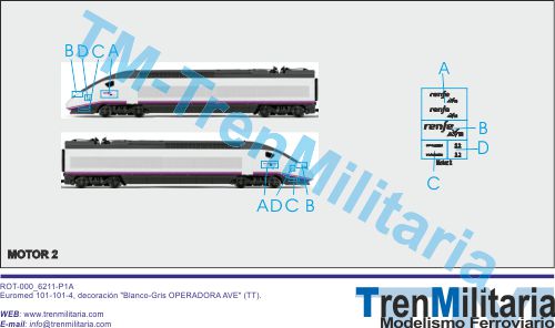 | Referencia TT-RE-000_0012 Automotor electrico RENFE 100-119-4 (TT), en decoración Blanco-Gris OPERADORA AVE | 7,15 € |
