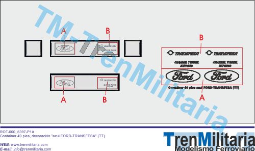 | Referencia TT-LO-000_0007 Vagón mercancías FORD-TRANSFESA Container 40 pies (TT), en decoración azul | 4,87 € |