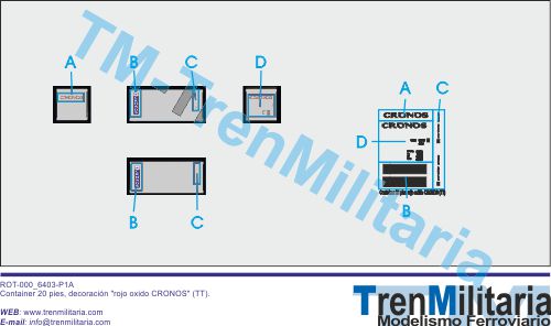| Referencia TT-LO-000_0003 Vagón mercancías CRONOS Container 20 pies (TT), en decoración rojo oxido | 4,42 € |