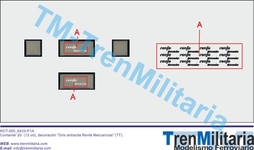 | Referencia TT-RE-000_0010 Vagón mercancías RENFE Container 20 pies (12 ud) (TT), en decoración Gris antracita RENFE MERCANCIAS | 7,15 € |