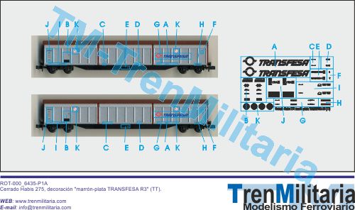 | Referencia TT-RE-000_0016 Vagón mercancías TRANSFESA Cerrado Habis 275 (TT), en decoración marrón-plata R1 | 7,15 € |