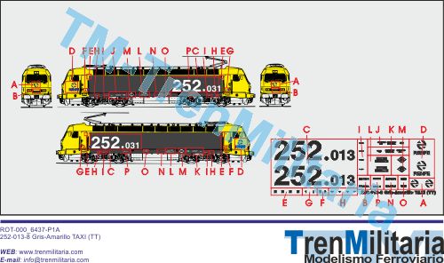 | Referencia TT-RE-000_0009 Locomotora eléctrica RENFE 252-013-8 (TT), en decoración Gris-Amarillo TAXI | 5,78 € |
