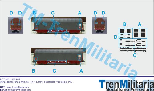 El kit contiene las siguientes piezas: carcasa y chasis en resina, bogies "Pensylvania" en fundición y fotograbado, calcas, cristales, piecería en fotograbado (barandillas, rejillas, escalerillas y marcos), y piecería en fundición de metal (topes, armarios de bastidor, fuelles, señalizadores, etc.).